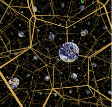 Different three-dimensional worlds (also called 3-manifolds), viewed from inside, from the program Curved Spaces by Jeffrey Weeks (publicly available free of charge at https://www.geometrygames.org/CurvedSpaces/index.html.en)